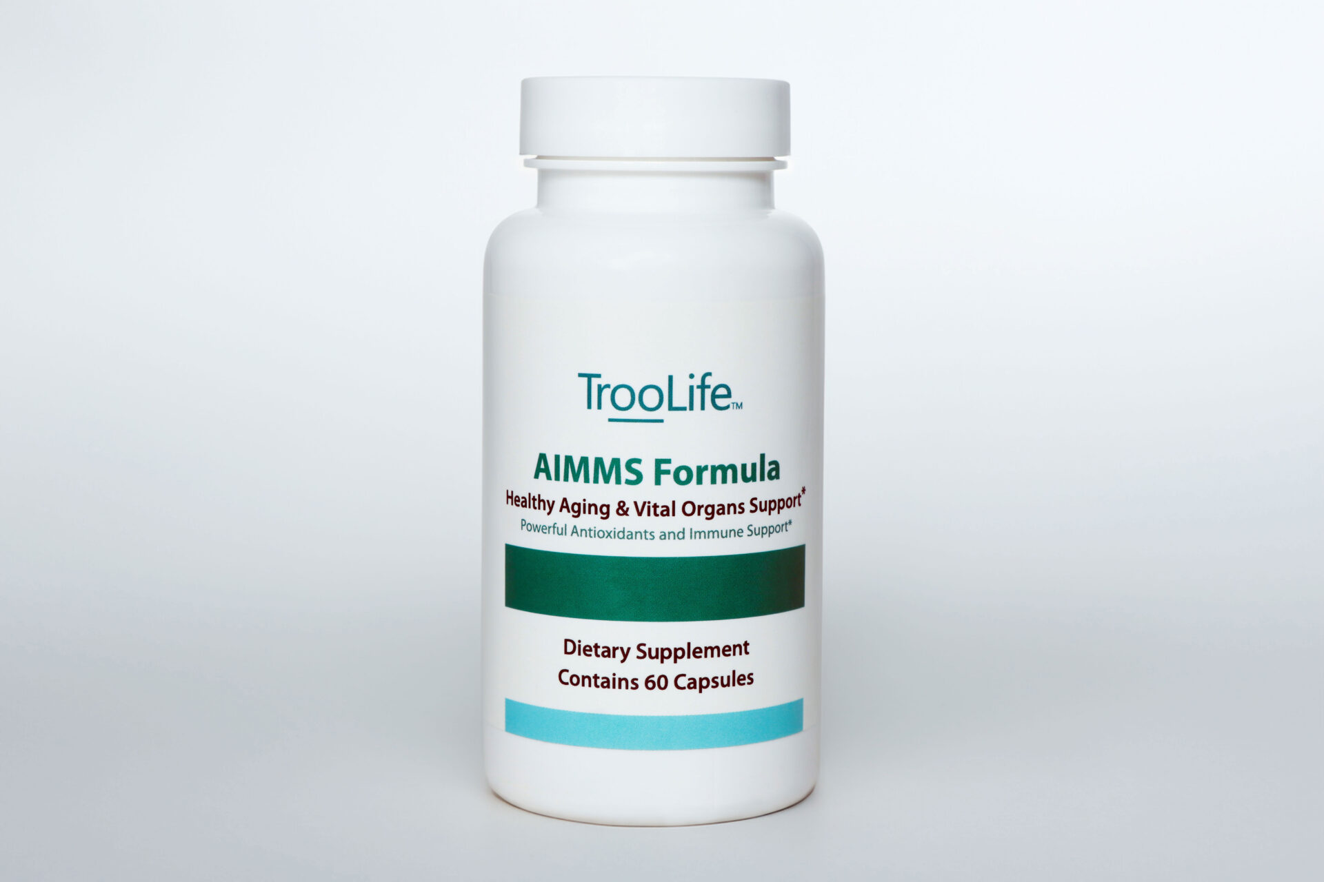 AIMMS is a revolutionary break-through in supporting anti-aging longevity, plus immunity protection in just two capsules per day. AIMMS contains powerful antioxidants and effective immunity elements including scientifically proven therapeutic amounts of Grape Seed Extract; Coenzyme Q10 (CoQ10); N-Acetyl-L-Cysteine (NAC); Alpha-Lipoic Acid (ALA); Vitamins A, C, D, and B12; plus Folic Acid; Zinc; Selenium; Iodine; and much more. Antioxidants are the chemical elements your body utilizes to fight against the oxidation aging of vital organs. Together they form a team that fights the free radicals which cause the oxidation process which damages your cells and the genetic material inside them. Your body makes free radicals as it processes your food, sunlight and toxins like smoke, pollution, and alcohol. Antioxidants either stop free radicals before they form or they break them down so they are harmless. The key is to have the complete variety and proper strength of antioxidants to make a very powerful team of defense to support your optimal health and longevity.
